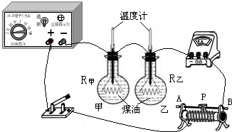 (2)将电阻R甲与R乙串联在电路中是为了使时间和电流相同;