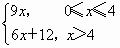 | 当用水量0≤x≤4时,水费y=6x; 当用水量x>4时,水费y=24+9×(x-4)=9x-12.故选B. |
