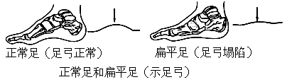 资料:足部的多块骨靠关节和韧带紧密连结,使得足底形成凸向上方的弓形称为足弓。足弓具有弹性,可以缓冲行走时对身体所产生的震荡,同时还有保护足底的血管和神经免受压迫等作用。正常足的足弓较深,扁平足的足弓较浅,甚至足掌面平坦。如果维持足弓的结构过度劳损、先天性发育不良或骨折等,均可引起足弓塌陷,形成扁平足。