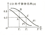 。在一容积可变的密闭容器中充有10mol CO和20molH 2 ,在催化剂作用下发生反应生成甲醇,CO的平衡转化率(a)与温度(T)、压强(P)的关系如图所示。