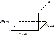 如图,在一个长为50cm,宽为40cm,高为30cm的长方体盒子的顶点A处有一只蚂蚁,它要爬到顶点B处去觅食,最短的路程是多少?