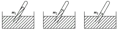 如图所示,用截面积相同的粗细均匀玻璃管对三种不同的液体做托里拆利实验时的情形,玻璃管倾斜的角度相同,管的顶端为真空,露出液体中的玻璃管内的液体质量分别是、、,则、、的