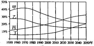 下图中四条曲线代表发达国家与发展中国家的少年儿童人口系数(0〜15岁少年儿 童占总人口的比例)和老龄人口系数(60岁以上老人占总人口数的比例)变化曲线。读图,回答下列各题。 小题1:代表发展中国家少年儿童人口系数的是
