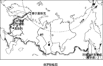 如图是俄罗斯略图,读图后回答下列问题:(1)俄罗斯国土东濒洋,西临海和海。(2)图中四个注有名称的城市中,每年冬季有一段时间太阳总在地平线以下的