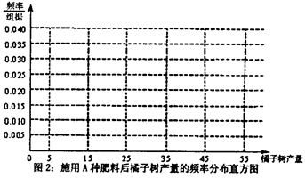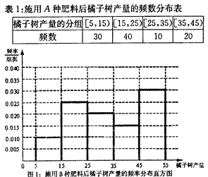 最佳答案: (Ⅰ) 图2: 施用A种肥料后橘子树产量的频率分布直方图表2:施用B种肥料后橘子树产量的频数分布表