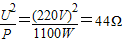 (2)电热丝R的阻值为44Ω.