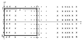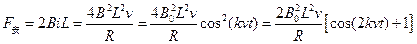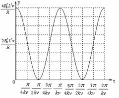 (1)磁场向 方向运动,等效金属框向 方向运动。 t=0时刻,金属框产生的电动势 ??? ????电流的方向根据右手定则可知为 ??(2)设经过时间t,金属框MN所在处磁场强度为B, 又 ,得到电流瞬时值的表达式是: ,是正弦式电流。(3)?? (4)金属框受安培力的方向始终向左。设经过时间t,金属框受到安培力为 由此可知:金属框受到安培力F随时间变化的图象如下图: |