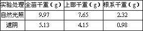 “根深叶茂”深刻说明植物地上部分与地下部分生长关系。某同学研究光照对水稻枝叶与根系生长影响,得到如下表所示的结果,下列有关实验结论或解释中错误的是[