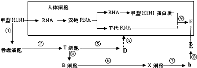 (5)注射甲型H1N1流感疫苗可以刺激机体产生细胞免疫过程和体液免疫过程,产生记忆细胞,当甲型H1N1流感病毒再次侵入机体时可以直接刺激记忆细胞,使记忆细胞迅速增殖分化形成效应细胞,进行免疫反应的效应阶段,达到预防疾病的目的.