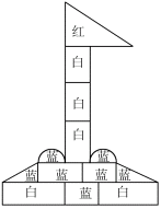 将如图所示用积木拼成的国旗和国旗台拆散,放入一个盒子里,请将下列事件按发生机会的大小填写在横线上.随意取出一块,恰为(1)红色,(2)蓝色,(3)白色,(4)三角,(5)矩形,(6)半圆.