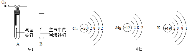 (4)在金属活动顺序表中,金属位置越靠前,越容易失去电子.Ca、Mg、K三种金属失电子能力由强到弱的顺序是______,如图2是三种原子的结构示意图,据此推测金属失电子能力的强弱除与最外层电子数有关外,还可能与______有关.