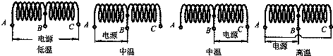 高温档:将A、C连接在一起后,A与B接入电源上,相当于AB与BC并联,此时电路电阻最小,功率最大.