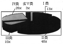 每年的6月5日是世界环境日.2002年6月5日浙江省环境保护局发布了《2001年度浙江省环境状况公报》,根据分设在浙江省内八大水系,平原河网和湖泊、水库的170个水质监测点的监测统计如图所示(水质Ⅰ类最佳,劣Ⅴ类最差,Ⅱ类和Ⅲ类以上可作为饮用水源).