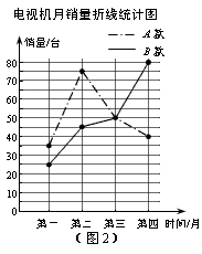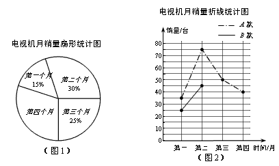 某商店试销A、B两款电视机,四个月共售出400台.试销结束后,该商店想从中选择一款电视机进行经销.请根据提供的两幅统计图完成下列问题:(1)第四个月销量占总销量的百分比是_