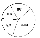 某校初一(1)班的体育委员,准备组织全班同学去观看一场比赛,为了吸引尽可能多的同学参与,他在全班同学中做了调查,然后收集数据并制作出了如图所示的扇形统计图,则最欢迎的球类运动是 ??? [ ]