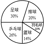 某学校七年级三班有50名学生,现对学生最喜欢的球类运动进行了调查,根据调查的结果制作了扇形统计图,如图所示。根据扇形统计图中提供的信息,给出以下结论:①最喜欢足球的人