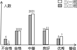 如图反映了某校初中二年级(一)、(二)两班学生电脑操作水平等级测试的成绩,其中不合格、合格、中等、良好、优秀五个等级依次记为50分、60分、70分、80分、90分,试结合图示信