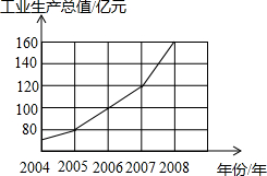 如图是根据某市2004~2008年工业生产总值绘制的折线图.观察统计图可得:增长幅度最大的年份是______.![]() |