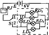 如图所示是摩托车转向灯电路,RJ为闪光器,它可以使电路间歇地通断,已知虚线框内有一个“6V、1.5W”的转指示向灯(用D表示)和四只“6V、10W”的转向灯,当驾车者将开关S拨至1位置时,