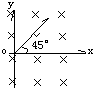 如图所示,一个带负电的粒子以速度v由坐标原点射入磁感应强度为B的匀强磁场中,速度方向与x轴、y轴均成45°.已知该粒子电量为-q,质量为m,则该粒子通过x轴和y轴的坐标分别是多少?