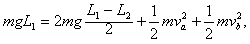 | 如图所示,一根跨越一固定水平光滑细杆的轻绳两端拴有两个质量均为m的小球a和b(可视为质点), Oa段的长度为L 1 ,Ob段的长度为L 2 ,且L 1 >L 2 ,球a置于地面,球b被拉到与细杆同一水平的位置,在绳刚拉直时放手,小球b从静止状态向下摆动,当球b摆到最低点时,恰好与球a在同一水平位置发生碰撞并粘合在一起,设碰撞时间极短,往后两球以O点为圆心做圆周运动,若已知碰前瞬间球a的速度大小为v a ,方向竖直向上,轻绳不可伸长且始终处于绷紧状态,(已知a,b质量相同)求: (1)球b在碰撞前瞬间的速度大小; (2)两小球粘合后将做圆周运动时绳中张力的大小。 |