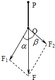如图所示,在共点力合成的实验中橡皮筋一端固定于P点,另一端连接两个弹簧秤,使这端拉至O点,两个弹簧秤的拉力分别为F1,F2(α+β<90°),现使F1大小不变地沿顺时针转过某一角度,