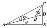 如图所示,在坡度一定的山坡 A 处测得山顶上一建筑物 CD 的顶端 C 对于山坡的斜度为15°,向山顶前进100米到达 B 处,又测得 C 对于山坡的斜度为45°,若 CD =50米,山坡对于地平面的坡角为 θ ,则cos θ =( ).