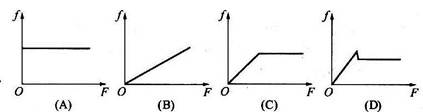 如图所示,在水平桌面上放一木块,用从零开始逐渐增大的水平拉力F拉着木块沿桌面运动,则木块所受到的摩擦力f随拉力F变化的图像(木块与地面间的最大静摩擦力略大于滑动摩擦力)正确的是下图中的( ) |