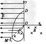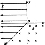 如图所示,在xOy平面内,第Ⅲ象限内的直线OM是电场与磁场的边界,OM与负x轴成45°角。在x<0且OM的左侧空间存在着沿x轴负方向的匀强电场E,场强大小为3.2N/C;在y&l