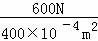 人和地面的接触面积为: S=2 × 200cm 2 =400cm 2 =400 × 10 ﹣ 4 m 2 ;
