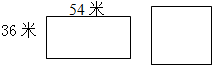 如图,一块长方形果园和一块正方形果园的周长相等.①长方形的周长是多少米?②长方形的面积是多少平方米?③正方形的面积是多少平方米?