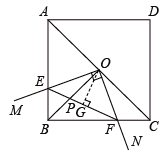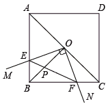 如图,在正方形ABCD中,点O为对角线AC的中点,过点O作射线OM、ON分别交AB、BC于点E、F,且∠EOF=90°,BO、EF交于点P.则下列结论中:(1)图形中全等的三角形只有两对;