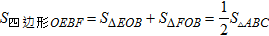 则正方形ABCD的面积等于四边形OEBF面积的4倍,故(2)正确;