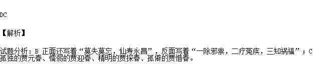 B、宝玉的那块玉正面写着“通灵宝玉”四个字,反面写着“莫失莫忘,仙寿永昌”八个字。