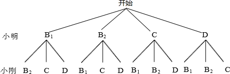 由树状图或列表可知,一共有12种等可能的情况,其中恰好同时是小明和小刚喜好的有4种,所以这两盒牛奶同时是小明和小刚喜好的学生奶的概率为:P=