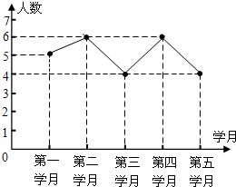 为了深化课堂教学改革,促进学生全面发展,某校积极进行课改实验.学校为了鼓励其中表现突出的同学,每学月进行“校园之星”评选活动.初2012级对本年级上学期五个学月的获奖人数