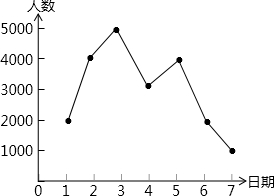 我市某风景区,在“五一“长假期间,接待游人情况如下图所示,则这七天游览该风景区的平均人数为( )