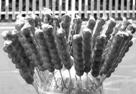 ( 咸宁中考 ) 冰糖葫芦 ( 如图 ) 的制作方法是:将洗净的山楂穿在竹签上,然后将一定量的白糖放入锅中加热,待白糖 ______( 填物态变化名称 ) 为糖浆后,将山楂蘸上糖浆,等山楂上的糖浆 ______( 填 “ 吸收 ” 或 “ 放出 ” ) 热量变成固态,令人垂涎欲滴的冰糖葫芦就做好了.