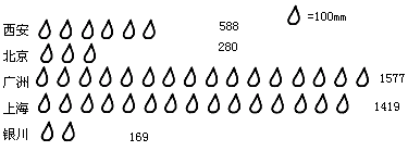 下图是西安、广州、北京、上海、银川五个城市一年的平均降水量(单位:mm).