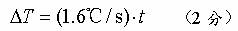 小宇同学用电加热器给质量一定的蓖麻油液体均匀加热,研究液体升高的温度与加热时间的关系。通过测量得到如下表所示的实验数据,请根据表中数据归纳出升高的温度ΔT与加热时间t的关系式为:ΔT= 。