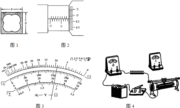 (1)先用螺旋测微器和毫米刻度尺分别测量金属管横截面边长a和金属管线的长度l,其中螺旋测微器的示数如图2所示,则金属管横截面边长a=______mm.