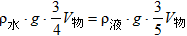 有一木块,放入水中静止后,有的体积露出水面,若将它放入另一种液体中时,有的体积浸入液体中,求这种液体的密度。