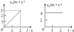 质量为1kg的物体在水平面内做曲线运动,已知互相垂直方向上的速度图象分别如图所示.下列说法正确的是()A.质点的初速度为5m/sB.质点所受的合外力为3NC.2s末质点速度大小为5m/sD