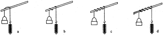 ①找一段棉绳,在棉绳的一端拴上一个沉重的东西(例如一把大锁),然后把它搭在一个平放的圆棍上(如铁床的横梁,自行车的大梁等),通过弹簧测力计来拉棉绳线的一端,如图所示.